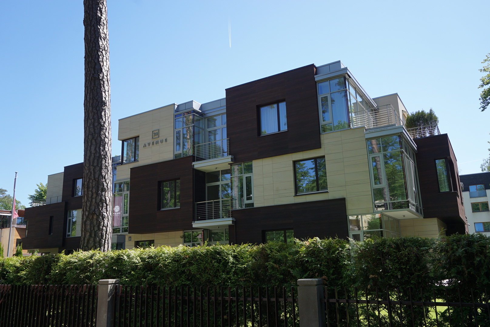parallel to the Baltic Sea. The streets are lined with lots of beautiful houses, some of them quite old and run-down, some very new and luxurious or still under construction. The beach is separated by a narrow strip of pine forest, spans the entire length and has beautifully fine sand.
